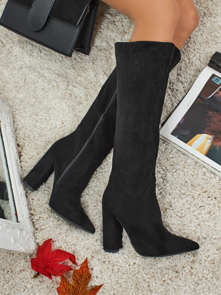 • Stiilsed naiste põlvesaapad plokk-kontsaga ja terava ninaga. Pealmine on valmistatud öko-seemisnahast, sees pehme karvkate. Mudel kinnitatakse lukuga. Ideaalne igapäevasteks sügisriietusteks!