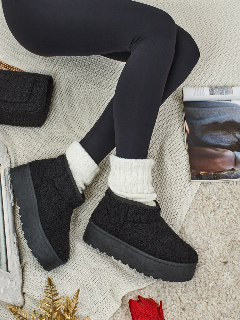 • Suurepärased naiste talvesaapad, paksu platvormtallaga lumekingad. Pealis on valmistatud kasukalaadsest kangast, sisemus on soojustatud karusnahaga. Ideaalne baas talveks!