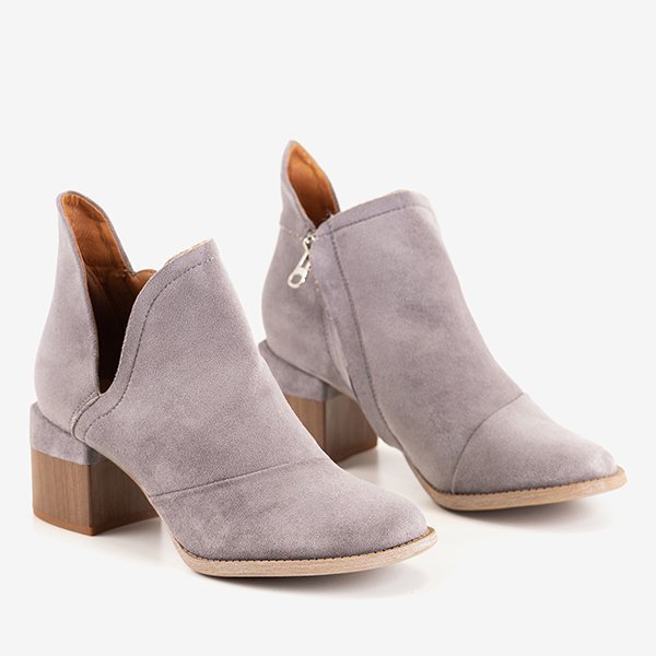 - Модные женские ботильоны с вырезами на невысокой стойке. Верх выполнен из эко-замши серого цвета, а вставка обтянута тканью. Модель застегивается на молнию с внутренней стороны. Прекрасно сочетается с любым повседневным стилем!