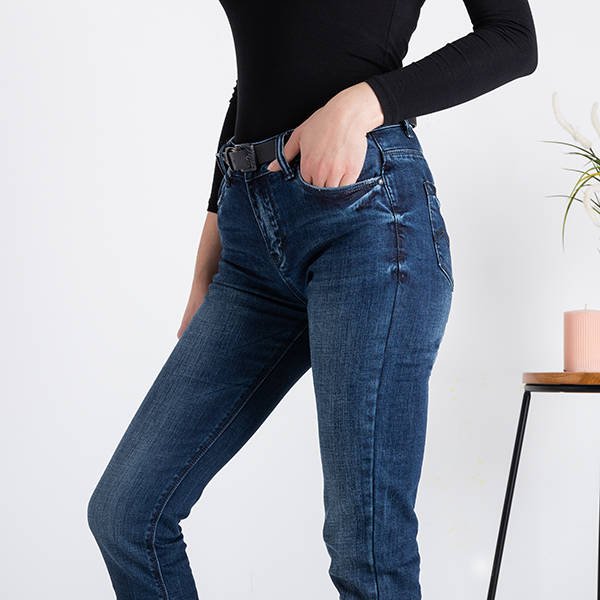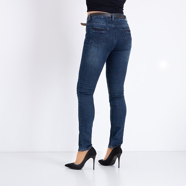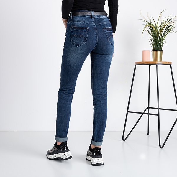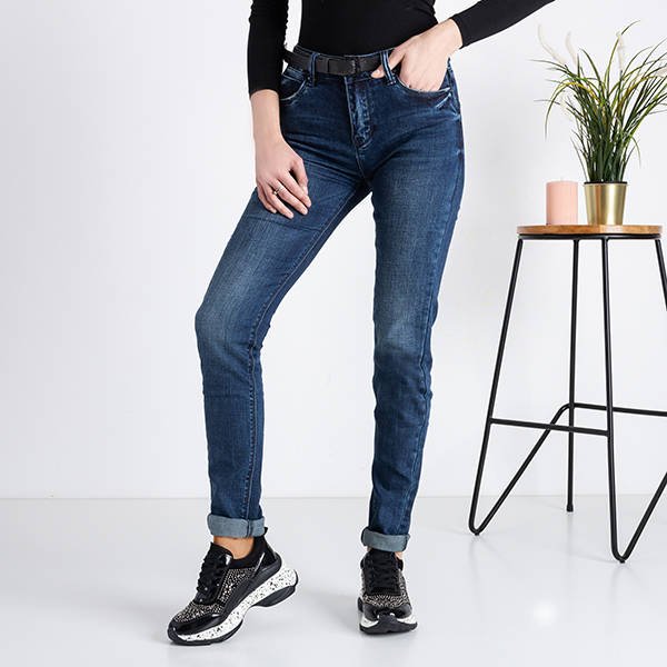 Темно-синие женские джинсовые джинсы с поясом - Одежда