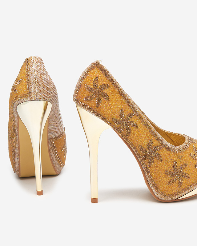 Золотые женские блестящие туфли со стразами Yilla