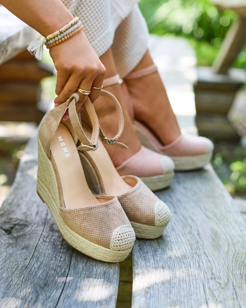 - Женские сандалии на платформе, выполненные из эко-кожи с ажурной отделкой. Модель застегивается пряжкой вокруг щиколотки, внутри стелька выложена эко-кожей. Подошва декорирована джутовым шнуром. ПРИМЕЧАНИЕ: модель предпочтительна для людей с узкой анатоми