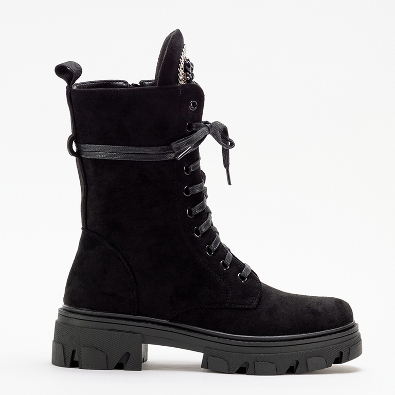 - Высокие женские ботинки с экологической замши, на шнуровке и молнии. Модель имеет украшение на языке. Идеальный выбор в прохладные дни!