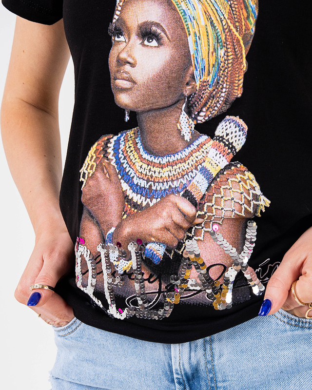 - Оригинальная женская футболка с круглым вырезом и короткими рукавами. Передняя часть футболки украшена ярким принтом и пайетками. Станет отличным украшением для повседневной укладки. ПРИМЕЧАНИЕ: Точность измерения (+/-) 1 см.