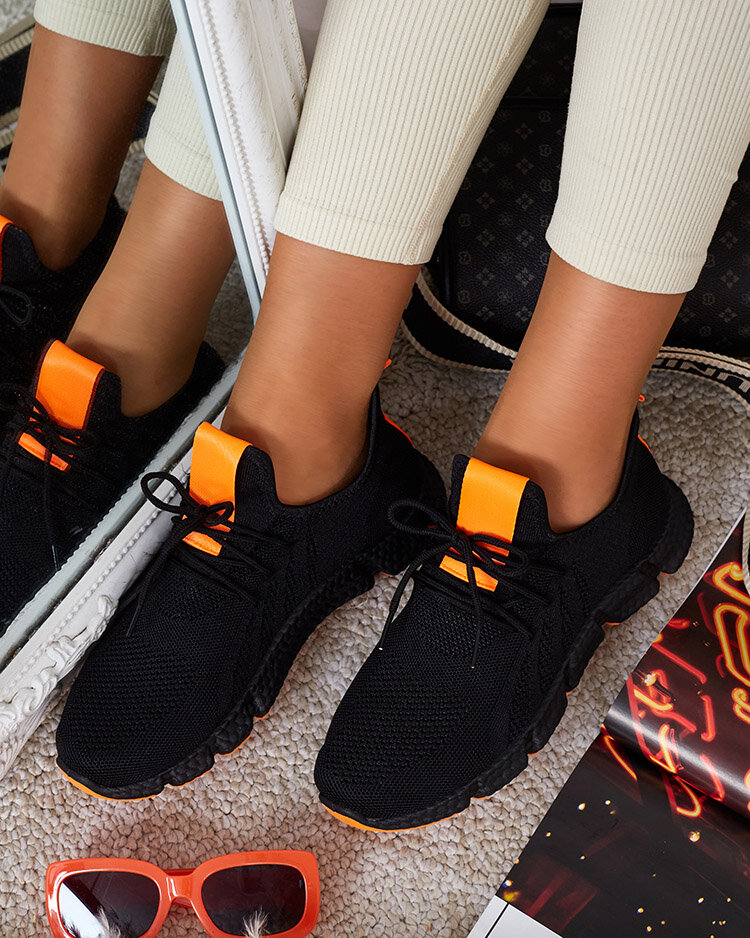 Черные женские кроссовки с оранжевыми вставками Bommgi