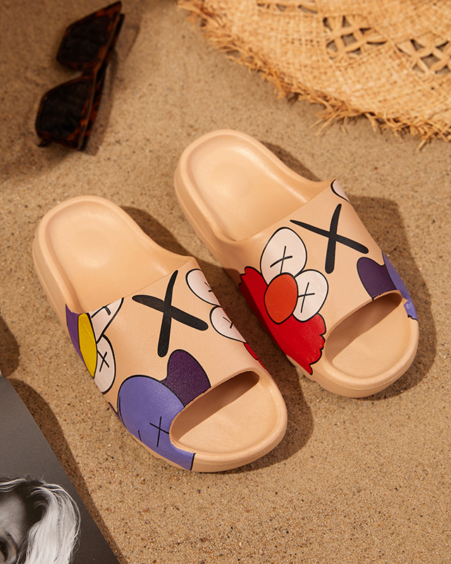 Бежевые женские резиновые шлепанцы с принтом Pfizz