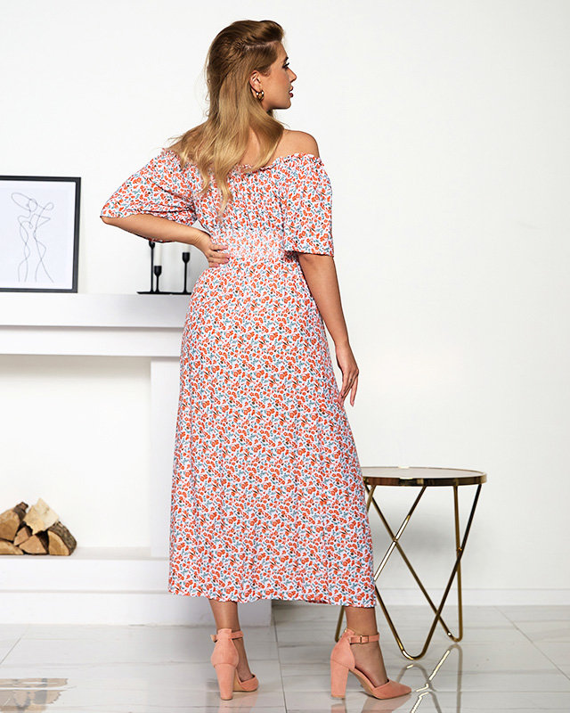 Оранжево-белое платье-макси с цветочным узором - Одежда