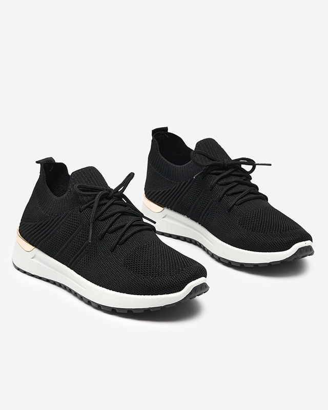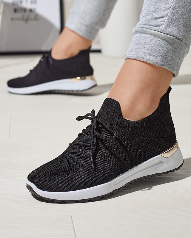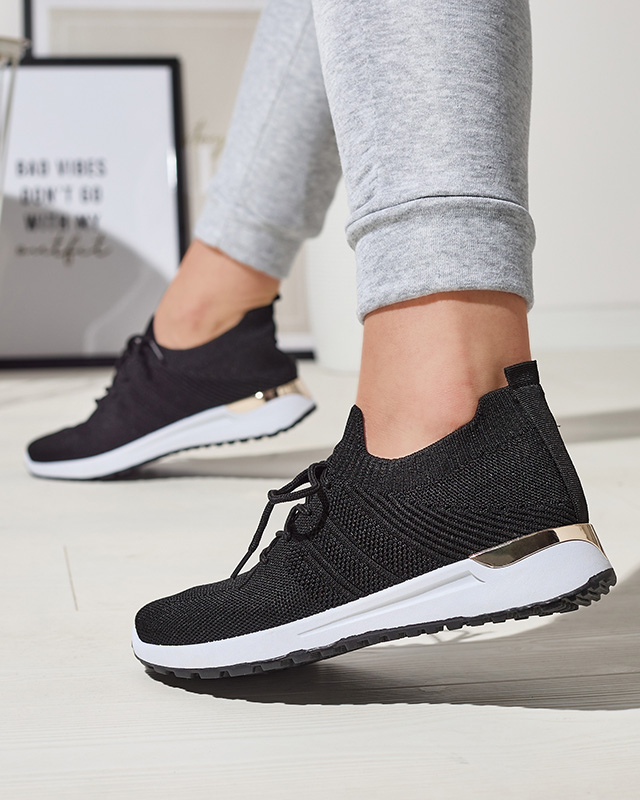 - Sportowe buty damskie na płaskiej podeszwie, posiadają złoty element w tylnej części. Cholewka sznurowana i wykonana z tkaniny. Bardzo wygodne!