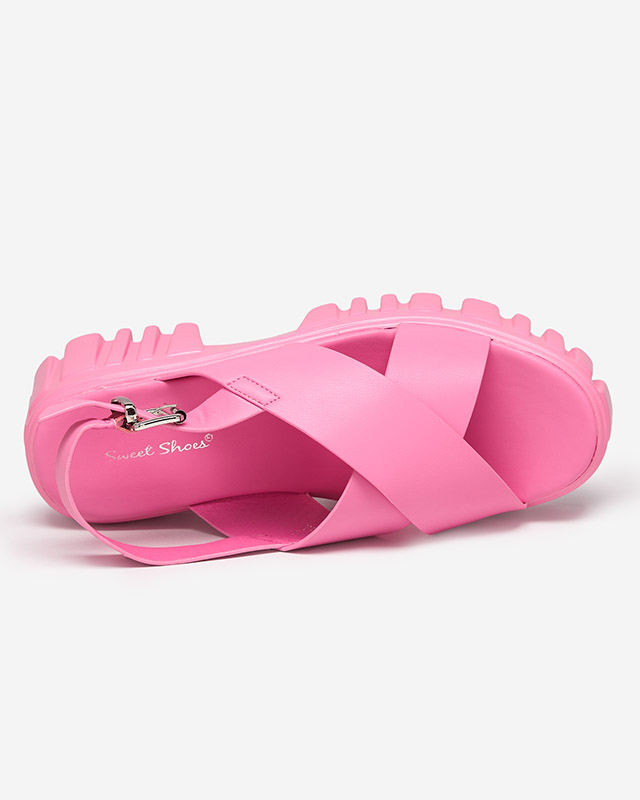 Неоновые розовые женские босоножки на массивной подошве Otida