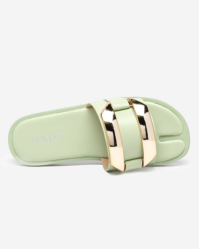 Зеленые женские шлепанцы с золотой отделкой Kedino
