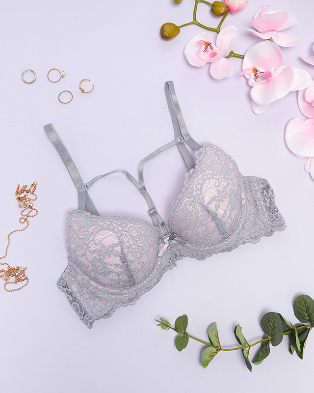 Серо-розовый кружевной бюстгальтер на бретелях - Нижнее белье