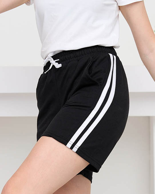 • Спортивные и очень удобные шорты в полоску, украшенные полосками. Модель имеет широкую резинку и завязки на талии. Идеально подходит для активного времяпрепровождения! ПРИМЕЧАНИЕ: точность измерения (+/-) 1 см.