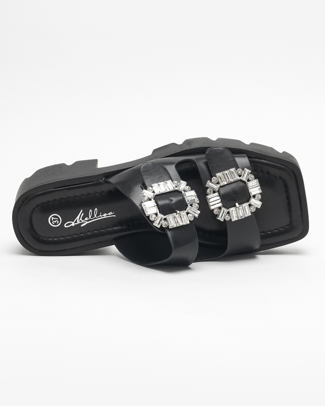 Тапочки женские черные с орнаментом из цирконов Sadoh - Обувь