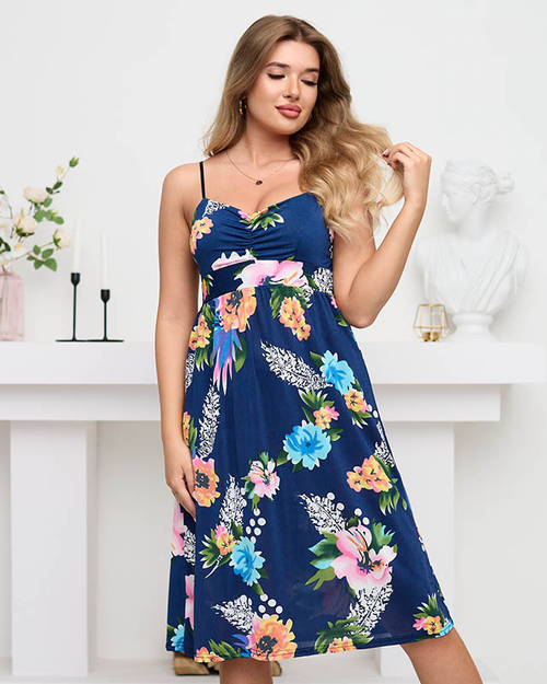 • Платье длиной до колена с цветочным мотивом. Модель свободного кроя имеет отрез на талии с резинкой и регулируемые бретели. Идеальна на лето! ПРИМЕЧАНИЕ: Точность измерения (+/-) 1 см.