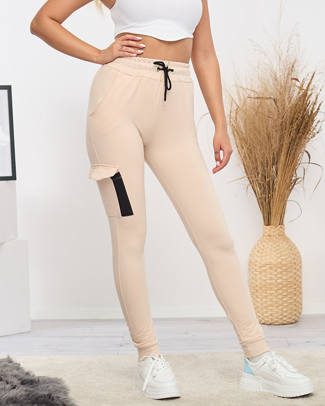 Женские бежевые хлопковые спортивные штаны - Одежда