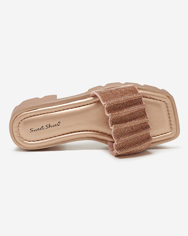 Тапочки женские золотые с фианитами Emkoy - Обувь