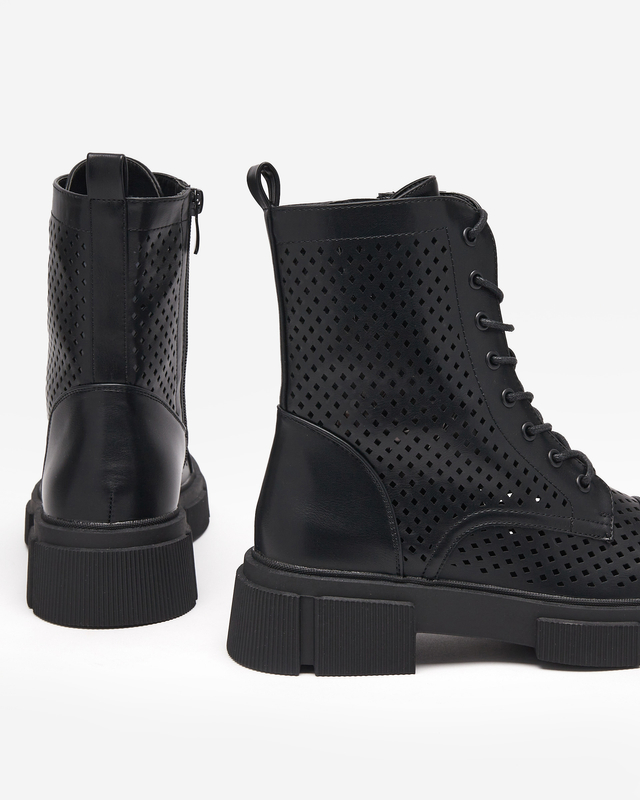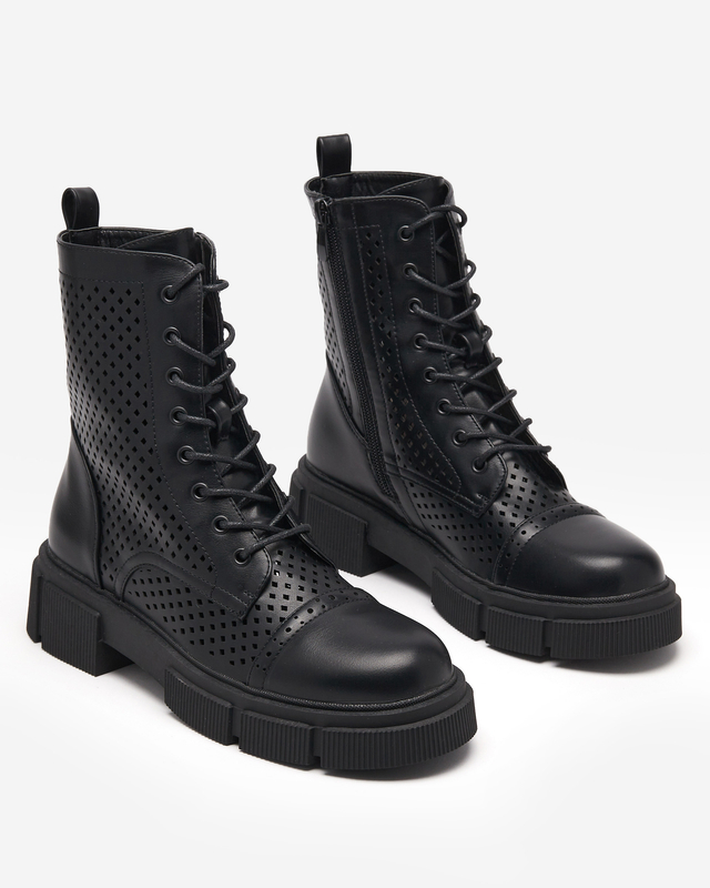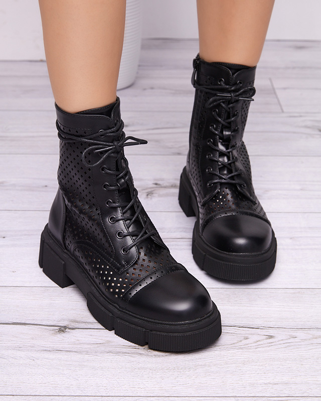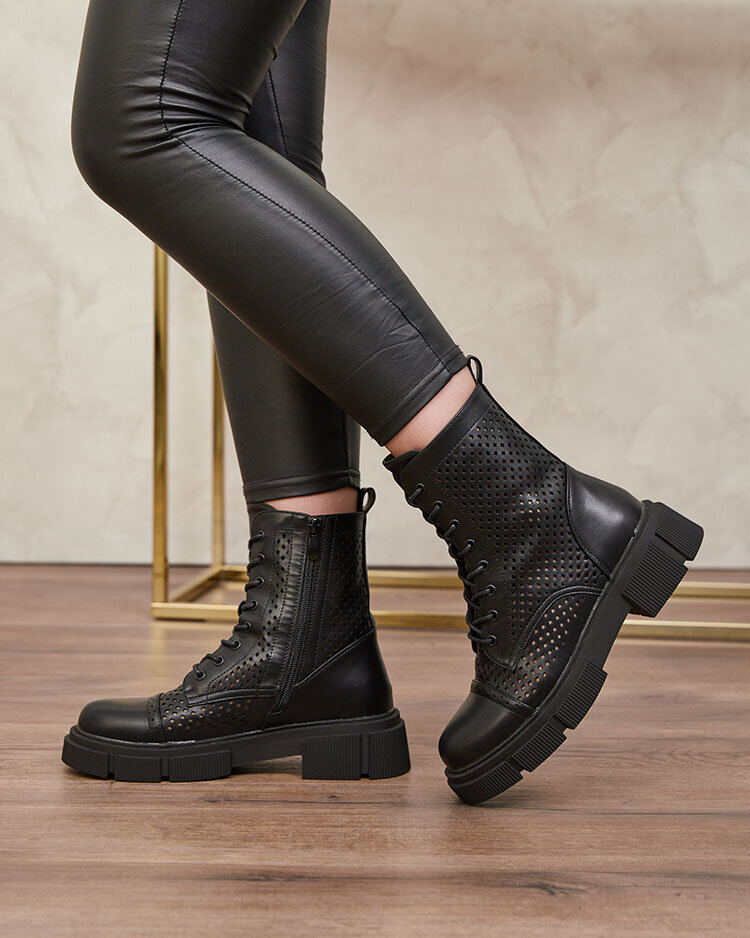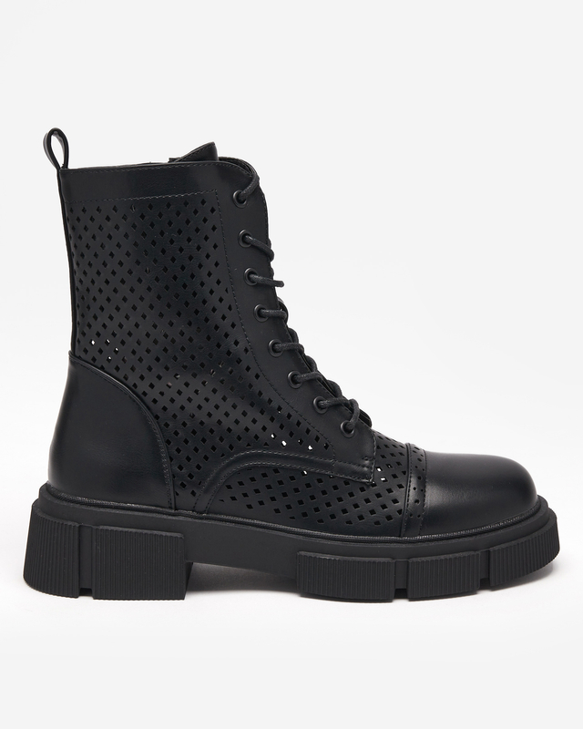• Уникальные женские сапоги из экологической кожи с ажурной отделкой. Внутренняя часть обуви отделана эко-кожей. Ботинки шнуруются и застегиваются на молнию по бокам. Идеальная пара для образа в стиле бохо. ЧЕРНАЯ ЖЕНСКАЯ ОБУВЬ НЕУТЕПЛЕННАЯ ROLIKA