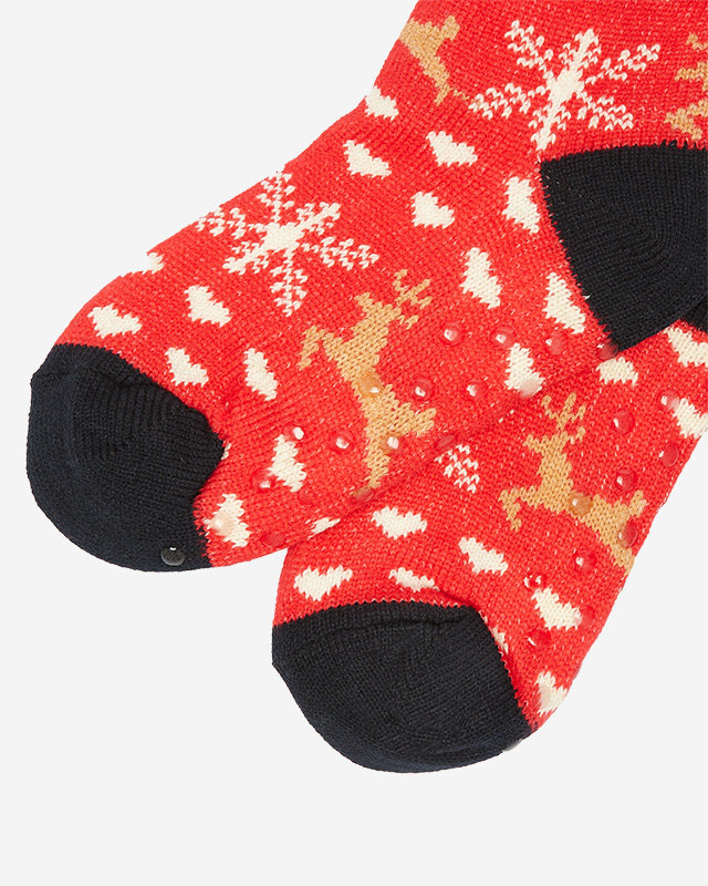 - Красивые женские толстые носки, отделанные рождественским рисунком с нескользящим низом. Внутри утеплены белой теплой овчиной. Носки отлично подойдут для холодных вечеров.