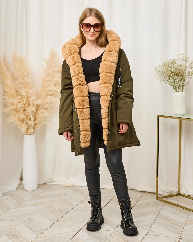 - Теплая женская зимняя куртка с капюшоном и съемным теплым мехом. Куртка застегивается на молнию и пуговицы, имеет 2 кармана на молнии по бокам и 2 на рукаве - прорезные посередине. Отлично подходит для зимнего времени!