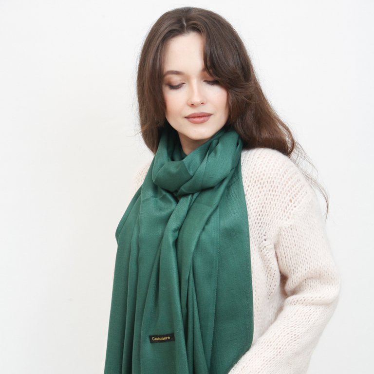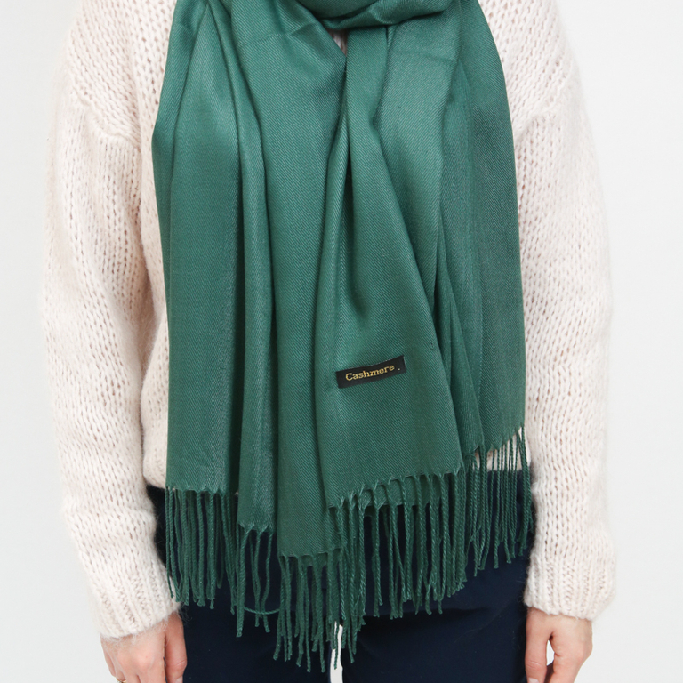 Темно-зеленый женский большой шарф с кистями - Аксессуары