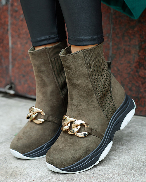 - Женские сапоги-слипы на резиновой подошве, выполненные из мягкой эко-замши. Середина утеплена мягким мехом. По бокам пара имеет эластичные вставки. Верх украшен золотистой цепочкой. ЗЕЛЕНЫЕ УТЕПЛЕННЫЕ ЖЕНСКИЕ САПОГИ CUZITTA