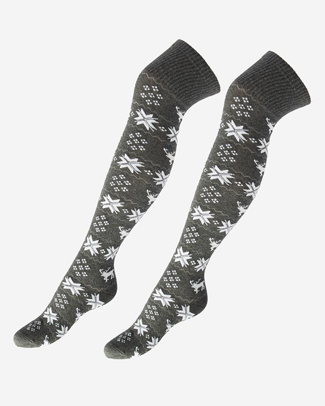 Женские рождественские носки через колено темно-серого цвета - Нижнее белье