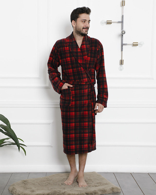 - Длинный мужской халат в клетку из хлопкового материала. Модель завязывается на поясе, имеет карман и высокий воротник. Идеально подходит для любого сезона. ПРИМЕЧАНИЕ: Точность измерения (+/-) 1 см.