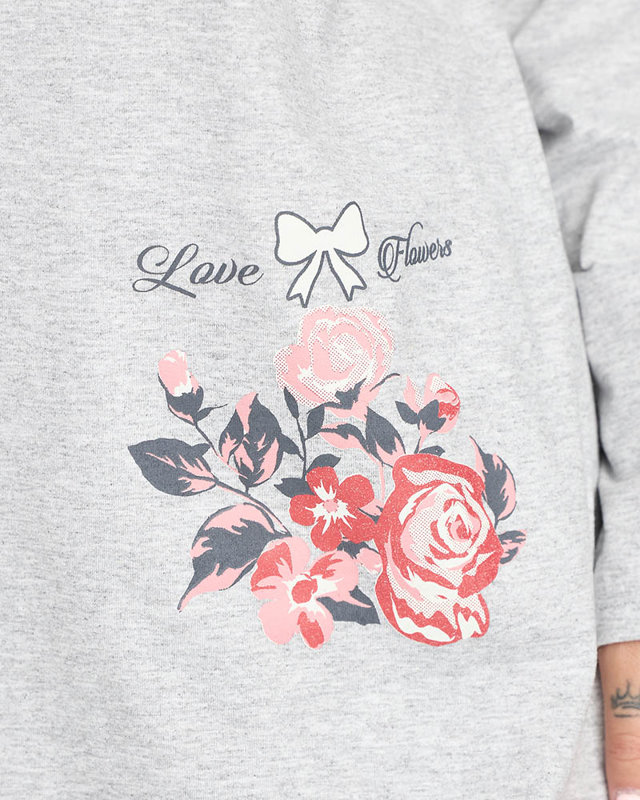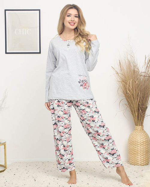 Женская пижама с цветочным принтом серого цвета PLUS SIZE - Одежда