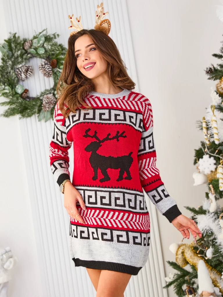 - Рождественское платье-свитер для женщин выполнено из теплого трикотажного материала. Модель длины мини, имеет длинные рукава и украшена оригинальным принтом. Обязательно должно быть в гардеробе каждой женщины! ПРИМЕЧАНИЕ: Точность измерения (+/-) 1 см.