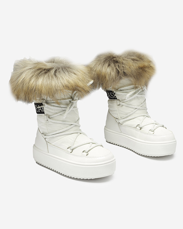 Белые детские ботинки-слипоны a'la snow boots with fur Asika - Обувь