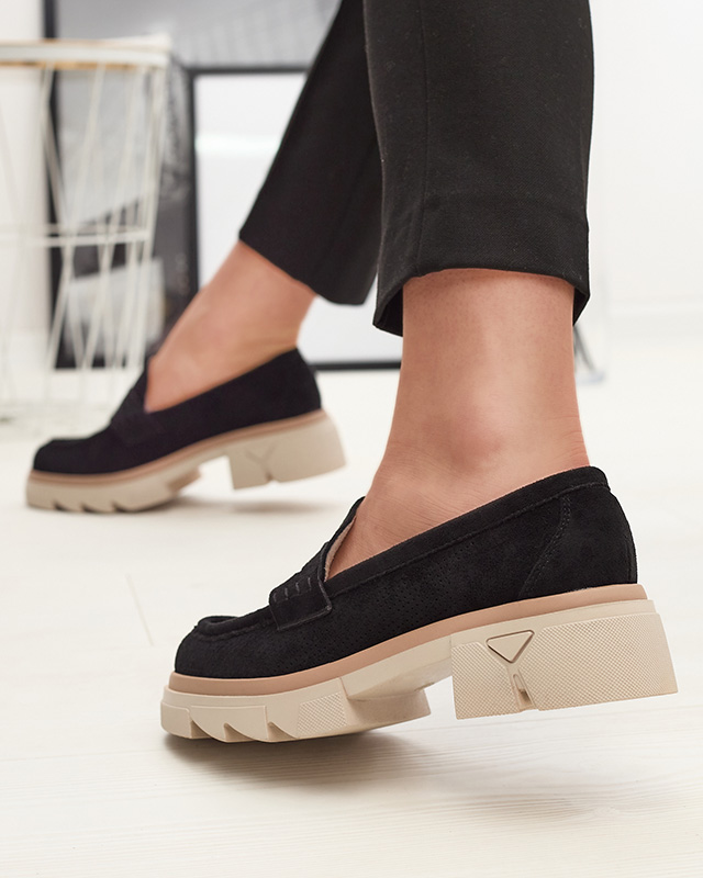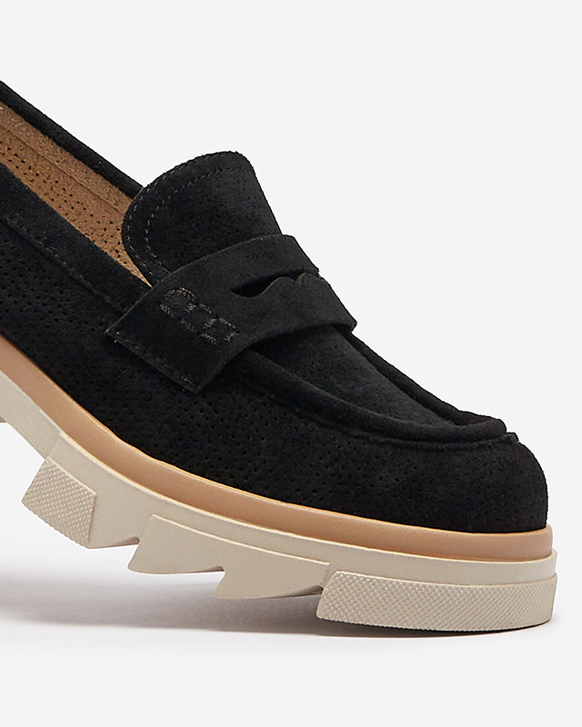 Черные женские ажурные мокасины на сплошной подошве Ejina - Обувь