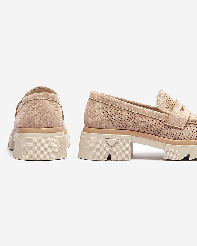 Светло-коричневые женские ажурные мокасины на сплошной подошве Ejina - Обувь