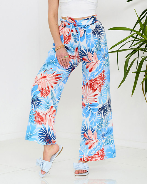 Синие женские брюки-палаццо с цветочным узором - Одежда