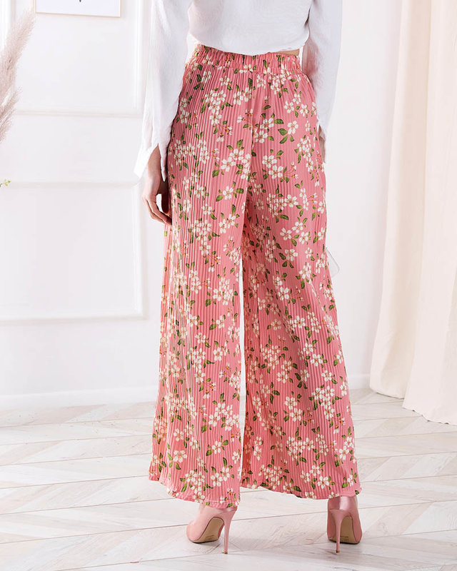 Женские розовые брюки из ткани с цветочным узором - Одежда