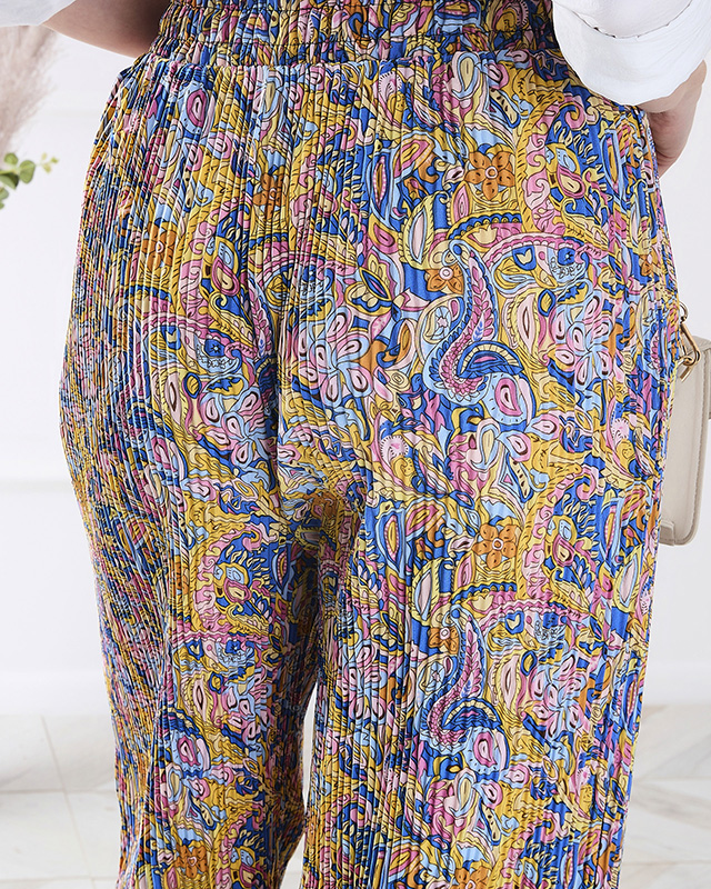 Женские узорчатые брюки с широкими штанинами желтого цвета - Одежда