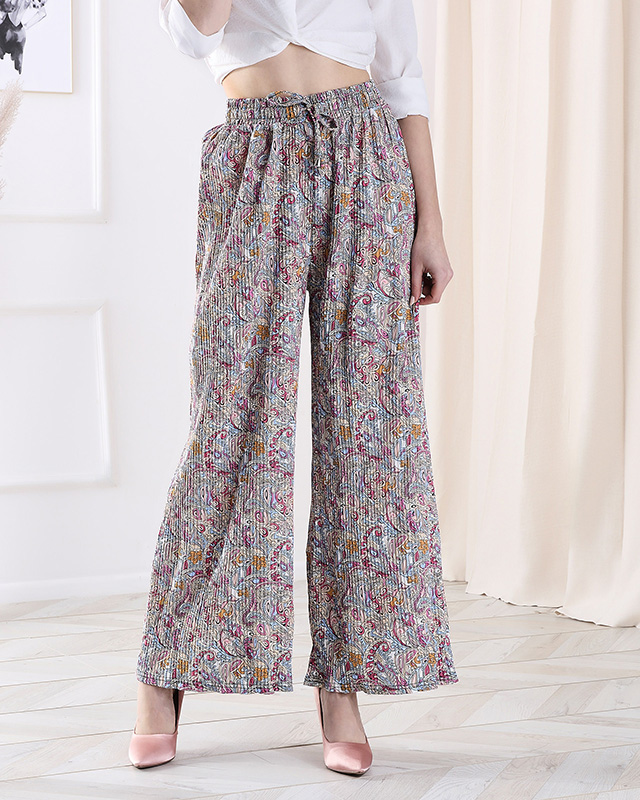 • Широкие брюки из ткани с широкими штанинами. Модель выполнена из легкой и воздушной ткани и имеет резинку и штанины на талии. Брюки украшены красочным принтом. Идеальный вариант для лета! ПРИМЕЧАНИЕ: Точность измерения (+/-) 1 см.