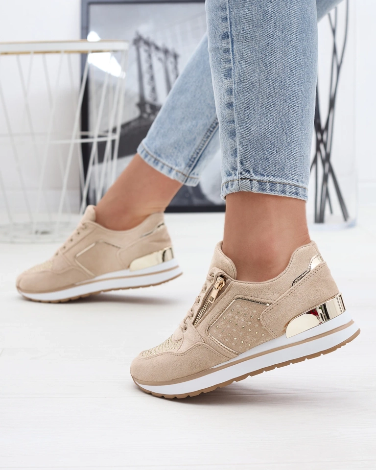 - Стильная женская спортивная обувь из органической замшевой кожи, имеет металлические вставки. Верх на шнуровке, украшенной цирконами, декоративная молния сбоку и тканевая стелька. Супер аксессуар для джинсов и толстовки или рубашки!