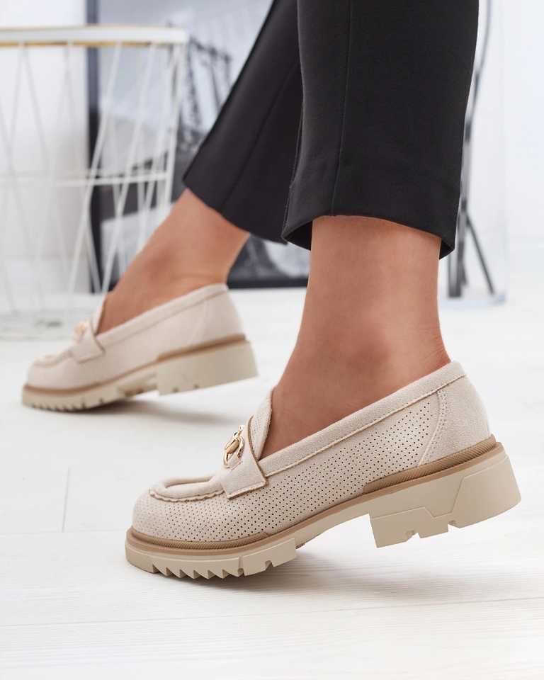 Кремовые ажурные женские мокасины с цепочкой Imerila - Обувь