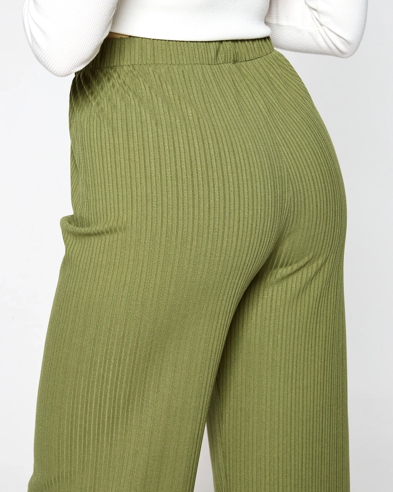 - Легкие женские широкие брюки, выполненные из ребристой ткани. Изделие имеет эластичный пояс и штанины, которые прекрасно подчеркнут талию. Must have этого сезона! ПРИМЕЧАНИЕ: Точность измерения (+/-) 1 см.