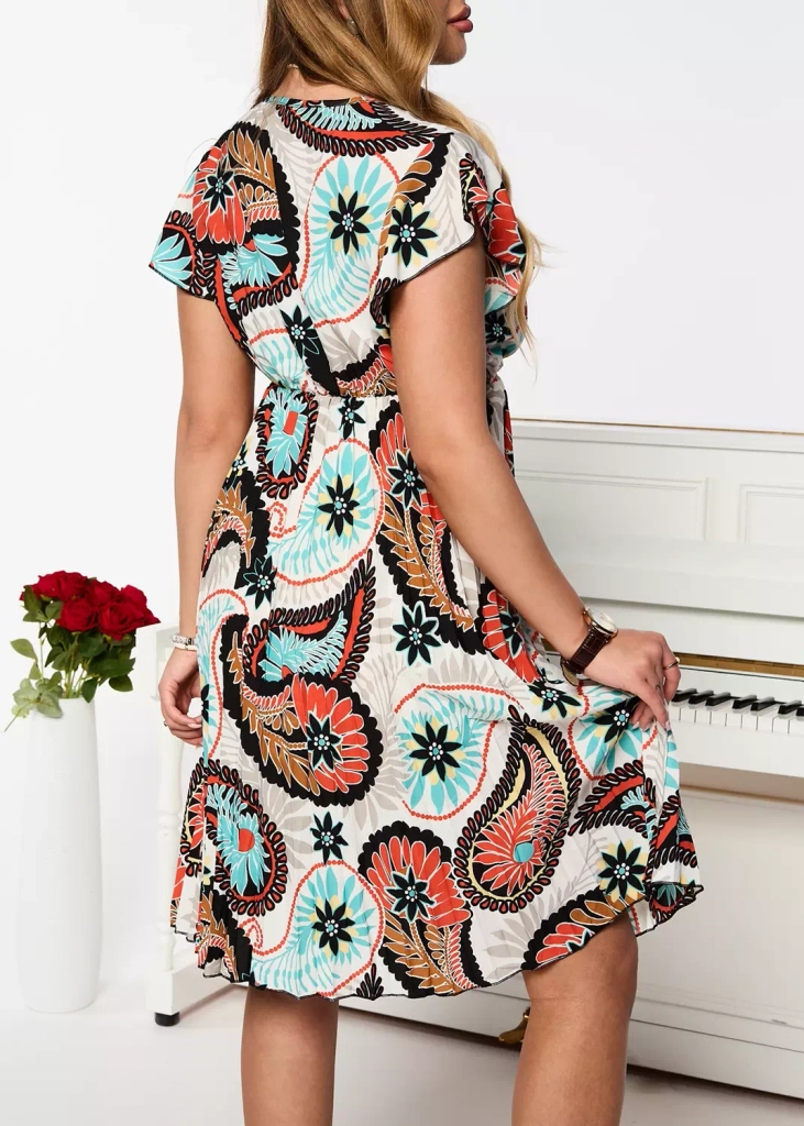 - Женское летнее платье длиной до колена, выполненное из легкой плиссированной ткани. Модель с вырезом-конвертом и короткими рукавами. Идеально сочетается с босоножками! ПРИМЕЧАНИЕ: Точность измерения (+/-) 1 см.