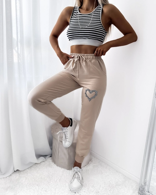- Женские треники с 2 прорезными карманами, имеют эластичную талию и низ штанин. Брюки завязываются на талии, сбоку украшение из циркония в форме сердца. ПРИМЕЧАНИЕ: Точность измерения (+/-) 1 см.