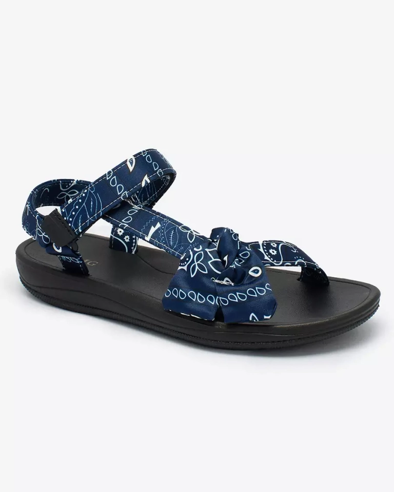 - Спортивные женские сандалии на резиновой подошве. Ремешки выполнены из тканевого материала с принтом и украшены бантиком. Представленная женская обувь застегивается с помощью ремешков на липучках. Они хорошо прилегают к ноге!