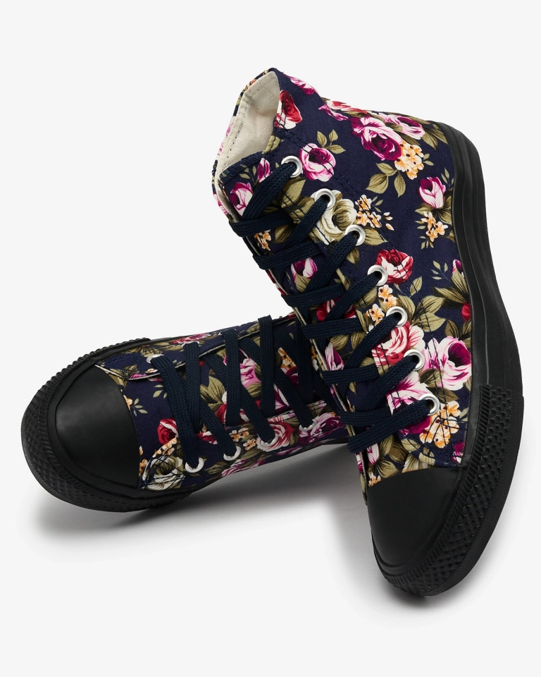 • Модные женские высокие кеды из ткани на резиновой подошве. Шнуровка и цветочный принт придают им очарование. Удобные и стильные, идеально подходят для повседневного стиля.
