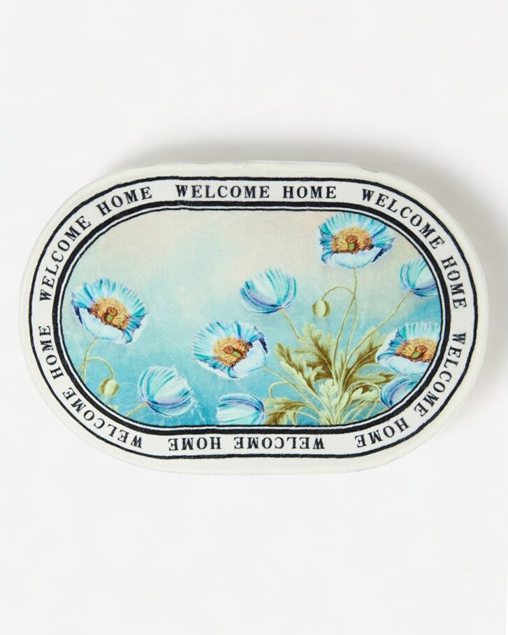 - Небольшой красочный коврик с коротким ворсом и надписью "Welcome Home". Он мягкий и нежный, что делает его чрезвычайно приятным на ощупь. Дополнительным преимуществом коврика является его нескользящая изнанка.