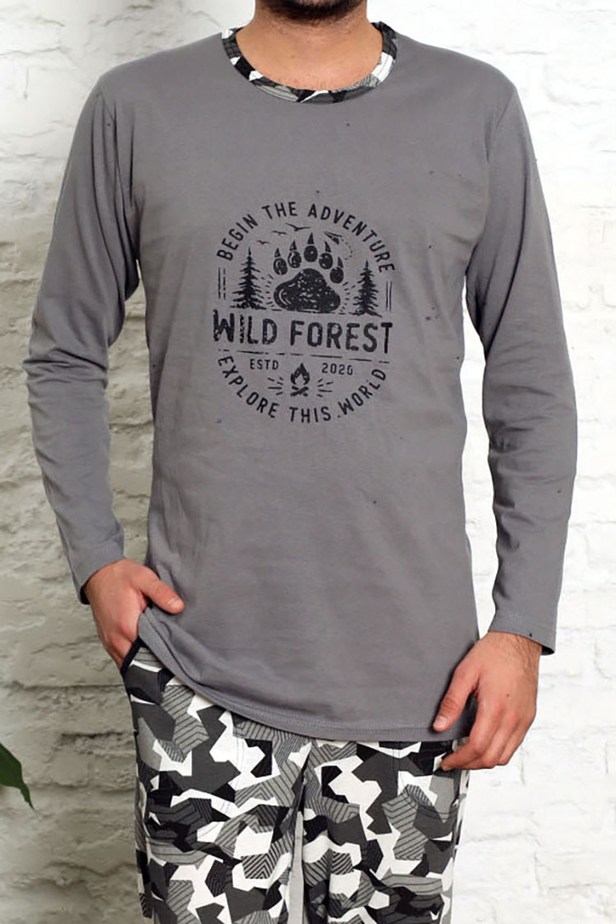 - Мужская пижама интересных расцветок из хлопкового материала. Блузка застегивается на пуговицы, брюки украшены принтом в клетку. Модель имеет длинные рукава и штанины. ПРИМЕЧАНИЕ: Точность измерения (+/-) 1 см.