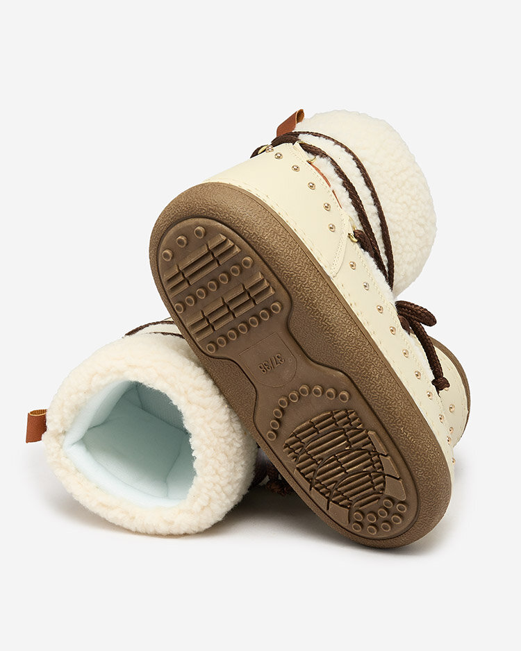 - Утепленные женские зимние снегоступы на плоской подошве. Верх на шнуровке, выполнен из комбинации экокожи и овчины. Утеплитель в виде пены. Идеальная основа для зимы!
