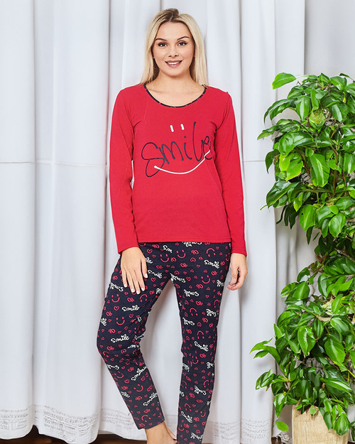 • Женская пижама из хлопковой ткани. Модель украшена принтом. Идеально подходит для домашних вечеров! ПРИМЕЧАНИЕ: Точность измерения (+/-) 1 см.