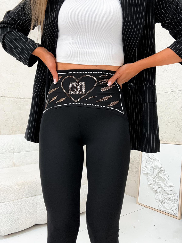 - Стильные леггинсы из эластичной ткани. Широкий эластичный пояс, украшенный цирконами, обеспечивает комфорт при ношении. Идеально подходят для активного дня!