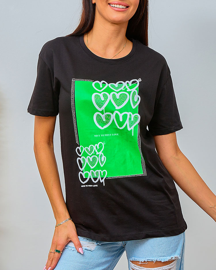 - Повседневная женская футболка с принтом и короткими рукавами. Изготовлена из хлопковой ткани. Идеальная основа для многих повседневных образов! ПРИМЕЧАНИЕ: Точность измерения (+/-) 1 см. Размеры измерены в плоском виде.