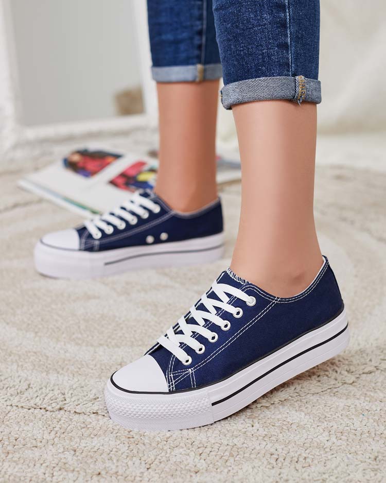 - Стильные женские спортивные кроссовки из тканевого материала. Модель на удобной платформе. Верхняя часть украшена шнуровкой. Отлично подойдут для создания повседневных нарядов!